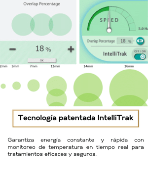 Tecnología revolucionaria IntelliTrak™ y detección de temperatura. La tecnología patentada IntelliTrak garantiza una administración de energía rápida y constante en la superposición seleccionada. La detección de temperatura proporciona información en tiempo real para ayudar a monitorear la eficacia del tratamiento y los puntos finales seguros.