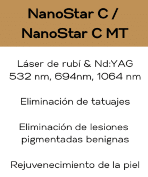 NanoStar es la última evolución en láseres Q-Switched, diseñado para la eliminación de tatuajes, lesiones pigmentadas benignas y rejuvenecimiento de la piel con máxima precisión y seguridad. Su tecnología avanzada ofrece tratamientos rápidos, eficaces y mínimamente invasivos.